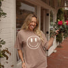 - CUTE but ANXIOUS Happy Face graphic screen print at center front